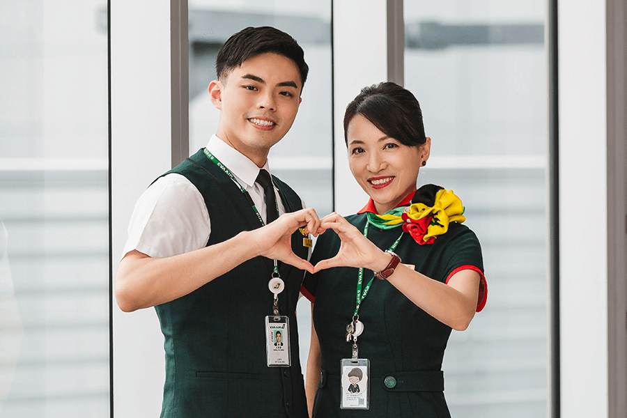 長榮航空日本分公司邀請這對母子在相機前重現當年場景,只見母子身上的最新版制服筆挺,笑容溫暖而燦爛,不過相較於母親的自信、專業,兒子的笑容似乎還有些青澀、靦腆。