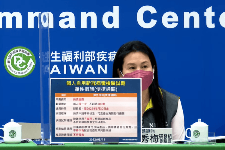 因本土疫情持續升溫,民眾需求遽增,導致快篩試劑大缺貨,食藥署長、指揮中心研發組副組長吳秀梅11日宣布,即日起至年6月30日,民眾可從國外購買個人自用的新型冠狀病毒快篩檢驗試劑,每人限一次且不超過100劑,不必向食藥署申請專案核准,可直接由海關放行通關,也強調僅供「個人」防疫使用,不得販售。