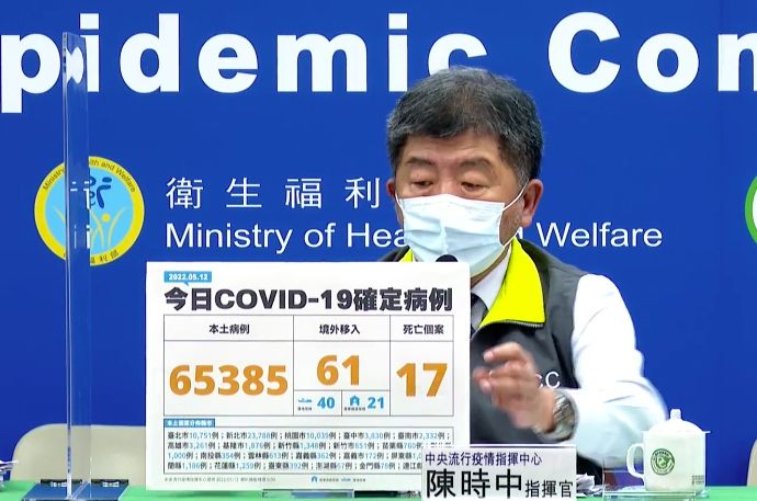 中央流行疫情指揮中心今(12)日公布國內新增65,446例COVID-19確定病例,分別為65,385例本土個案及61例境外移入(40例為航班落地採檢陽性);另確診個案中新增17例死亡,新增61例中症、18例重症,另有4例中症轉為重症。指揮中心醫療應變組副組長羅一鈞在記者會中表示,13日起開放符合條件之確診者親友可至防疫門診代為看診,以評估使用口服抗病毒藥物。