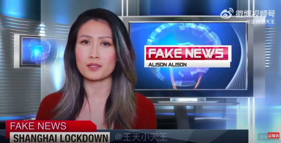 「我在上海的家中正在被封城...」穿著睡衣扮成駐上海記者,中國網紅「王天小天王」一人分飾兩角,以外國主播和記者連線的形式,諷刺上海封城亂象。