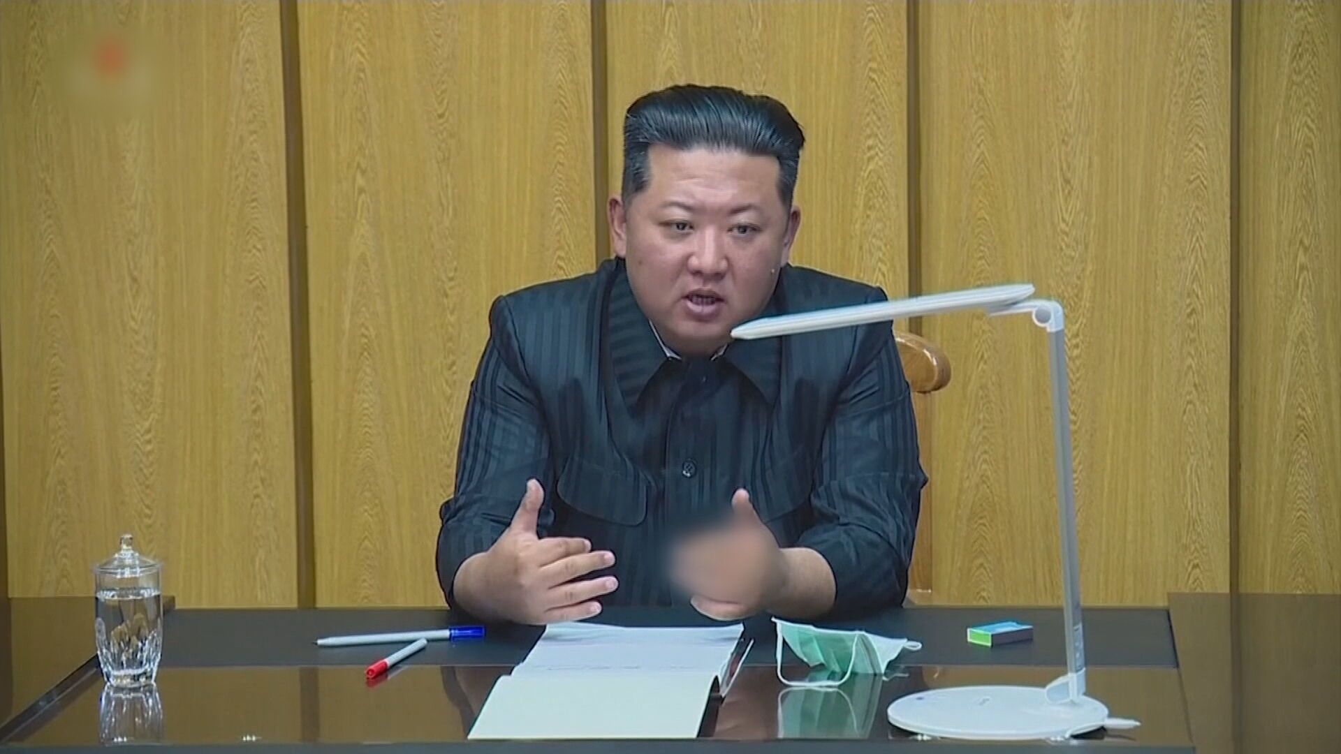 為了防疫,北韓領導人金正恩最近出席各種場合總是口罩戴緊緊,包括14日主持防疫會議時也是如此,但……等等,前1秒鐘還戴好好的口罩,下1秒鐘,不但口罩整個拿掉,手上還似乎多了什麼東西,你猜到了嗎?沒錯,就是香菸。