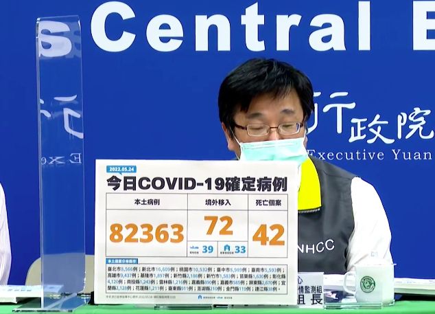 國內新增82,435例COVID-19確定病例,分別為82,363例本土個案及72例境外移入(39例為航班落地採檢陽性);另確診個案中新增42例死亡,其中39位有慢性病史、16位未曾接種過疫苗,中重症則新增251例。指揮中心宣布,最快週四開放「快篩陽即確診」。