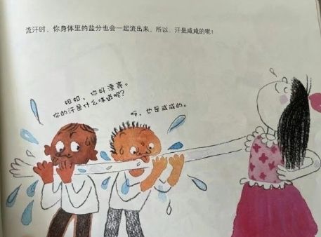中國有名男網友在微博發文表示,發現繪本《流汗啦!》內容竟有2位男孩舔女孩手臂上的汗,讓他馬上跟孩子說這行為是不對的,並表示「作為爸爸,我也覺得這樣的繪圖比較噁心」。貼文一出,引發網友熱議,認為出版社「毒害下一代」。對此,出版繪本的《東方娃娃》期刊26日表示,目前仍在了解具體情況。