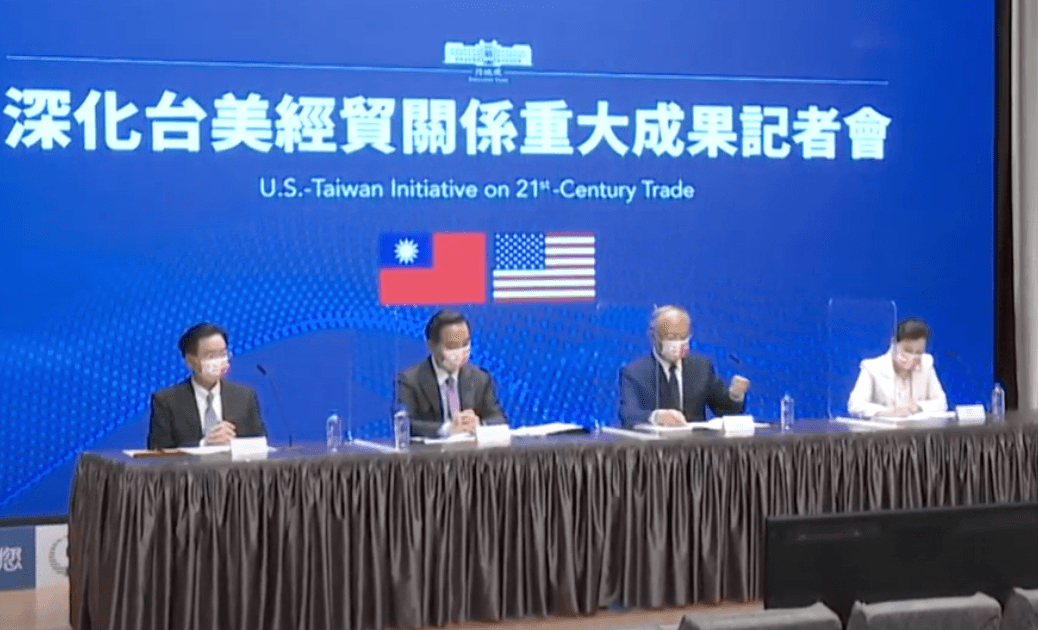 台美兩國經貿合作關係有重大進展,行政院在今晚8點30分舉行「深化台美經貿關係重大成果記者會」,由政院發言人羅秉成主持,政務委員鄧振中、外交部長吳釗燮、經濟部長王美花列席,記者會上宣布,台美雙方正式啟動「台美21世紀貿易倡議」,第一場會議預計在6月底於華府舉行,希望屆時可以簽署一項或多項相關的貿易協議。