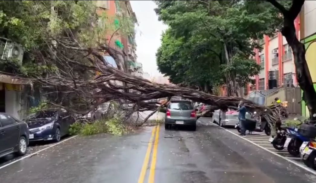 昨日發生在士林區中正路上的路樹倒塌意外,倒塌榕樹當時砸在路過的公車車頂,而今日上午路樹倒塌則發生在大同區永樂國小旁,整顆路樹連根拔起橫躺在路中,直接砸中一輛行進中的車輛,另外有4輛停在附近的車及3棟民宅都遭到波及,所幸兩起意外皆無人員傷亡。