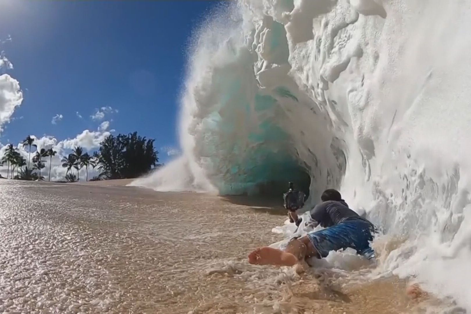 夏天到了,許多觀眾喜歡到海邊踏浪,但若有大浪就必須保持安全距離。夏威夷有一名攝影師,反而是專門拍攝海上巨浪,透過他的專業鏡頭紀錄,可以欣賞大浪溫柔的一面,照片中海天連成一線,壯觀的浪花在水中又像一團白雪,美得讓人屏息。