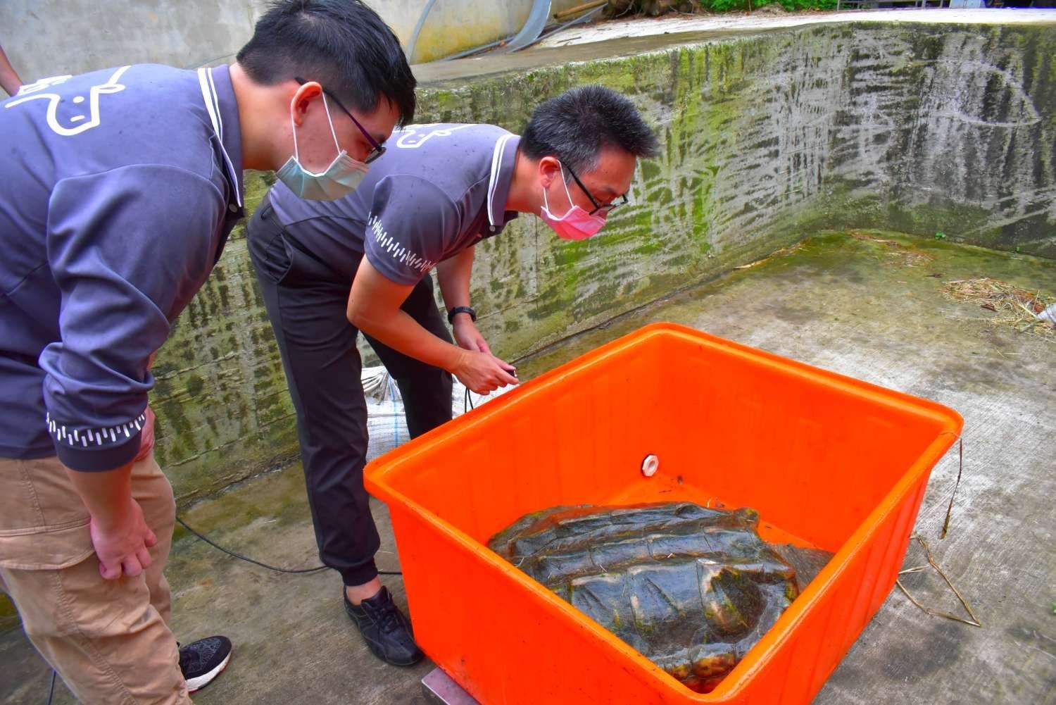 產發處表示,鱷龜原生北美洲,為大型淡水龜,體重可達110公斤,背甲上具有明顯的3列鋸齒狀突起,鷹嘴狀的嘴喙具有強大的咬合力,堪比老虎、鱷魚等大型猛獸,食性為雜食偏肉食性,平常會潛伏在水底,利用口腔類似蠕蟲的紅色舌頭,張嘴引誘魚類靠近捕食。