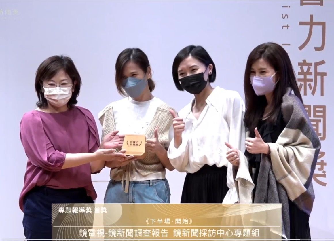 由弘道老人福利基金會主辦的第2屆「銀響力新聞獎」,21日在台北誠品生活松菸店表演廳舉行頒獎典禮,《鏡新聞調查報告》以「下半場.開始」,在「電視及網路影音類-專題報導獎」中獲得首獎。本專題以4個面向探討即將進入「超高齡社會」的台灣,所必須面對的問題,包含從年長者飲食健康到年長者投入弱勢族群照顧,推展到高齡者充實自我生活,最後是長輩在充實自我的同時,亦能關懷他人。