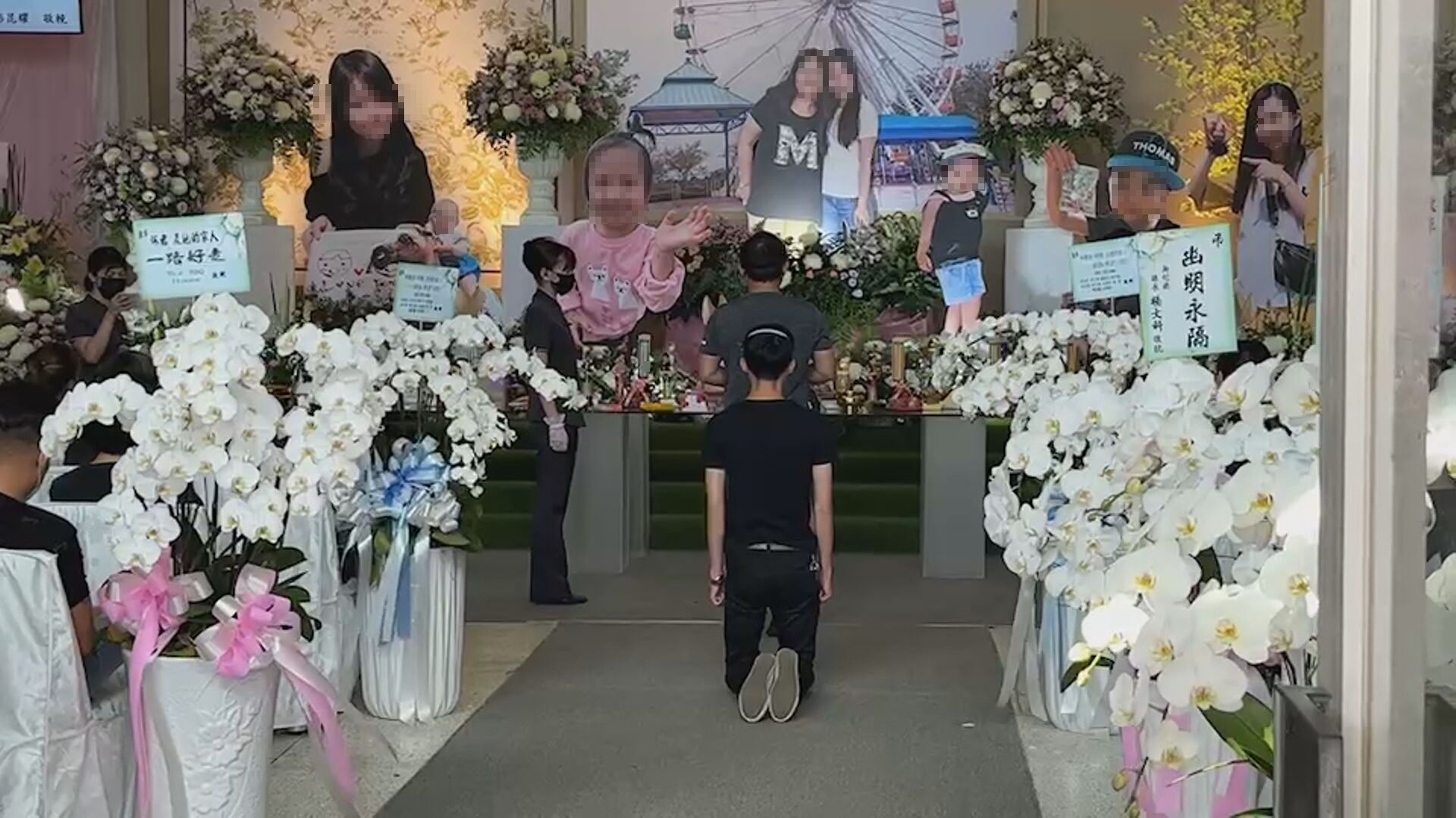 26日舉辦告別式,靈堂上播放過去一家人和樂融融的照片,氣氛悲傷,在火場中喪生的小女兒的外籍男友也到場,送她最後一程。而因為4位殞命的孩童年紀實在太小,家祭現場沒有晚輩,最後只好由來賓家屬一起代為上香,送逝者最後一程,白髪人送黑髮人的場面讓人鼻酸。