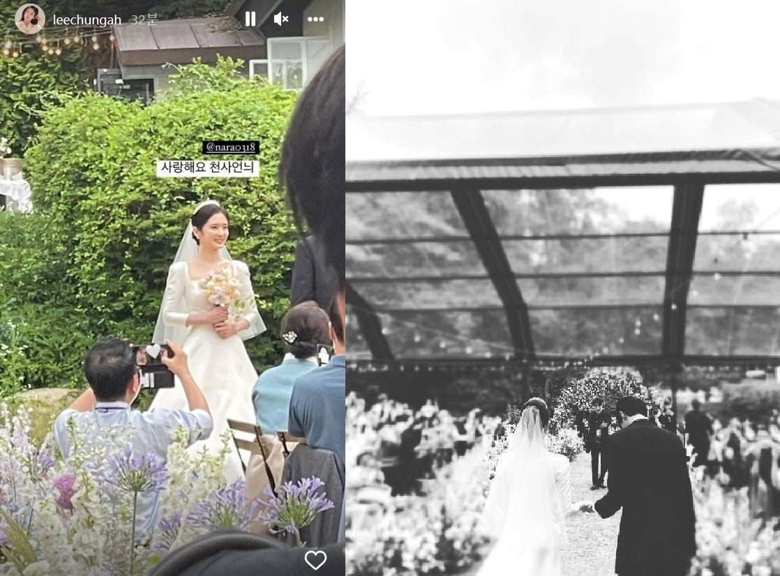 韓媒報導,婚禮司儀由張娜拉的圈內閨密朴京林擔任,好友李秀英獻唱婚禮祝歌。演員李清娥也在IG分享現場婚禮照,並在照片標註「天使姐姐,我愛你」,歌手姜敏奎則PO出一張新人的背影照。