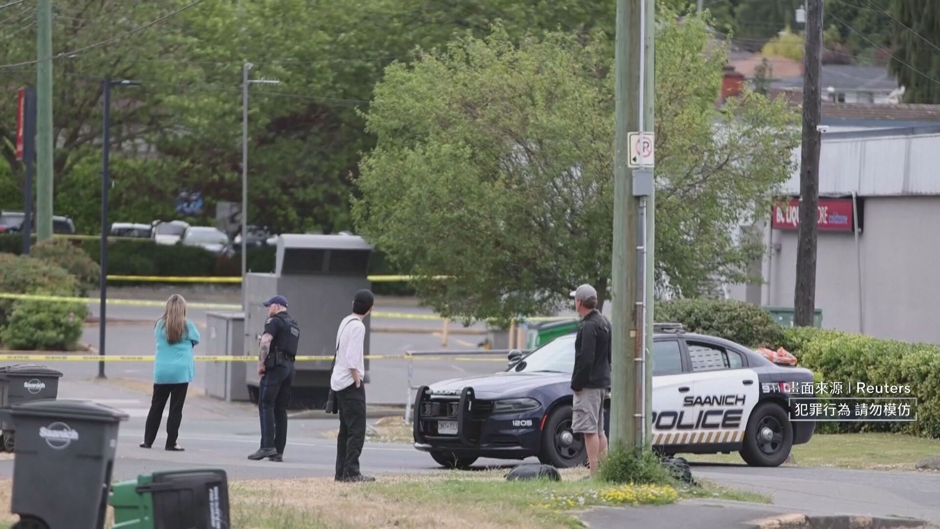 槍聲接連響起,位於美加邊界的加拿大卑詩省薩尼奇,街道上演警匪追逐戰,情況相當緊張,目擊民眾說至少聽到50聲槍響,甚至還拍到多名警察蹲低尋找掩護與歹徒駁火,一旁還有一隻警犬協助擒匪。