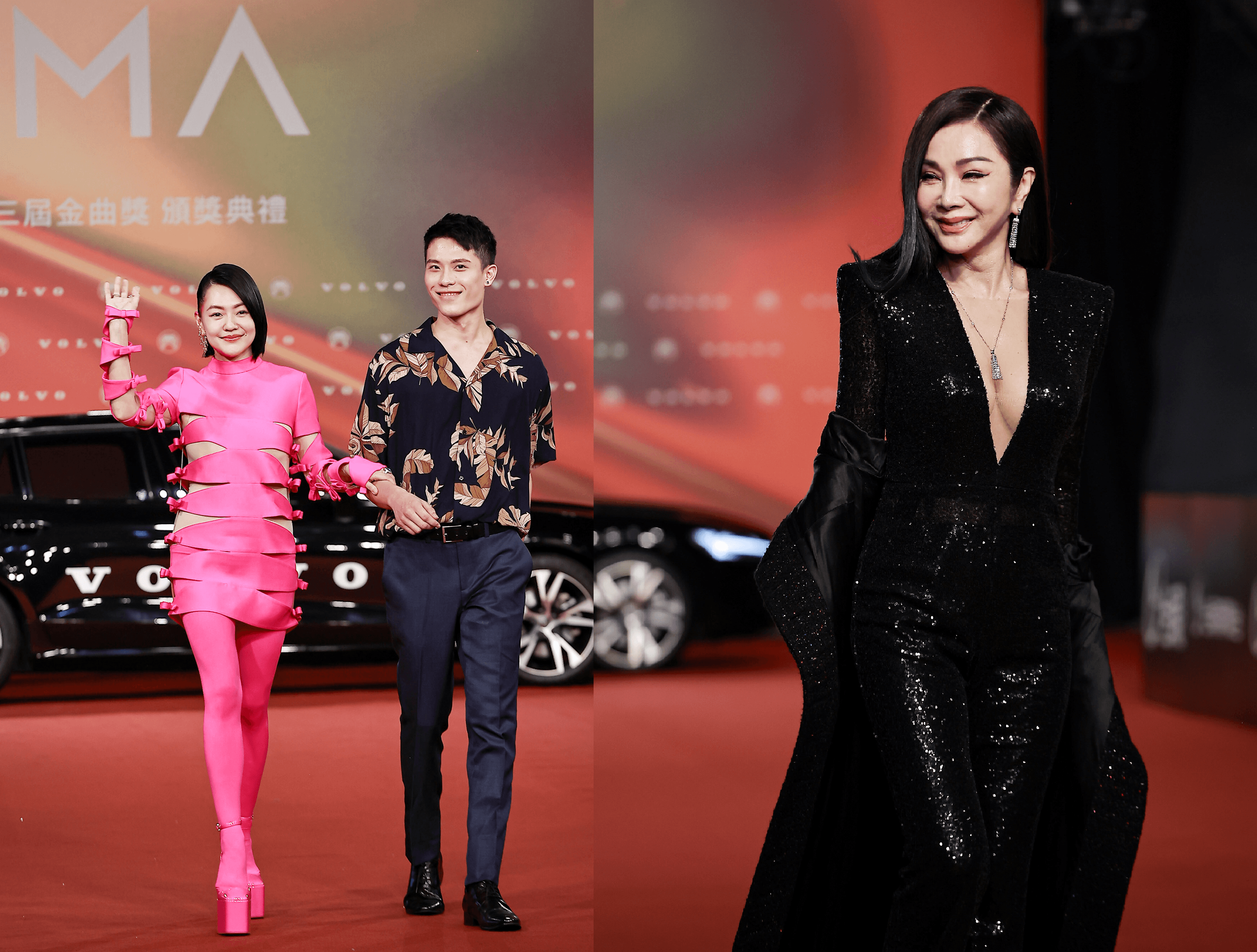金曲獎星光大道紅毯,也是一大重頭戲,男女明星爭奇鬥艷,展現出最帥、最美的造型,小S全身粉紅色裝扮相當搶眼,另外以金曲頒獎人現身的陳美鳳,邊走紅毯邊脫外套,展現好身材,也被認為最有爆點。
