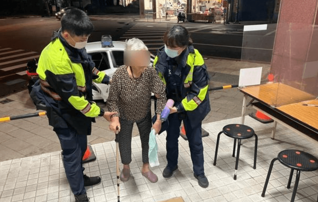 屏東潮州分局中山路所警員劉琇如、吳奇鴻,日前凌晨03時35分巡邏時,接獲通報,民眾稱有老婦人需要協助,警方趕到現場後,發現一名90歲老婦人因雙腳無力,坐在地上休息,在詢問過程中發現她疑似患有癡呆症,無法清楚表達,也不識字,僅能唸出自己姓名字音。