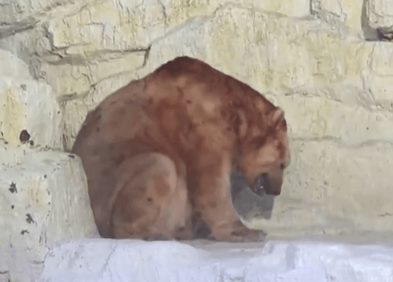 有遊客日前到中國大連老虎灘海洋公園遊玩,發現館內一隻北極熊毛髮呈棕黃色,且蹲在角落大口喘氣,懷疑是否出現健康問題。海洋公園表示,可能是北極熊正值換毛期,或拍攝光線問題,才會讓其毛色看來起像棕黃色,至於大口喘氣,則是大量活動後的正常現象,這隻北極熊很健康。