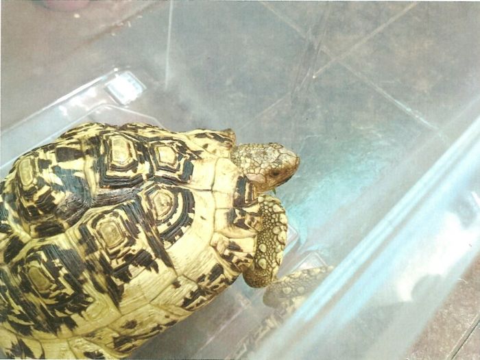 基隆市動保所表示,「豹紋陸龜」具黃色龜殼及不規則紋路,背甲斑點和花豹極為相似,須有許可證方可飼養,經獸醫檢查,民眾拾獲的「豹紋陸龜」長約40公分、重約2公斤,推估至少20歲,健康情況良好。