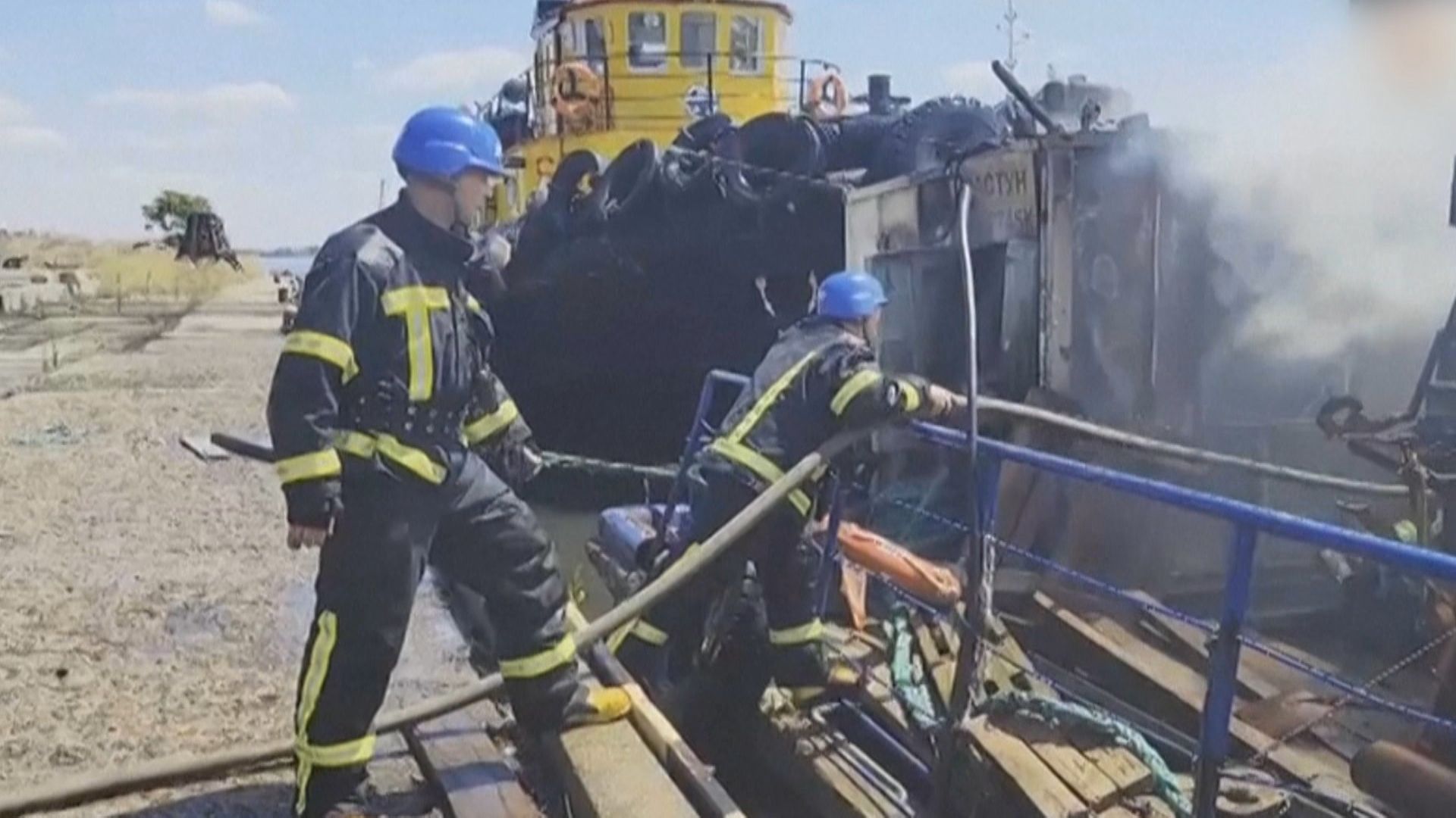 烏克蘭打火兄弟一邊拉水線灌救,另一頭有人駕駛船隻緩緩靠近灑水,因為停泊在南方黑海港口城市奧德薩的這艘船,正冒著熊熊火焰。原來,俄軍23號朝著奧德薩發射4枚巡弋飛彈,雖然2枚遭烏軍防空系統擊落,但另外兩枚卻直接命中港口,造成人員受傷與設施損壞,只是烏俄兩國前一天才達成協議,保證讓黑海穀物平安運出不卡關,俄羅斯不到一天就毀約,奧德薩居民坦言是見怪不怪。