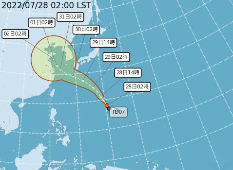 週五至下週一(29日至8月1日)隨著低壓帶逐漸接近,北部及東半部地區整天不定時有短暫陣雨,其他地區為多雲到晴,午後有局部短暫雷陣雨,清晨亦有局部短暫陣雨。未來一週氣溫方面,預測各地高溫32度至35度,後續因低壓帶影響,可能有所調整。