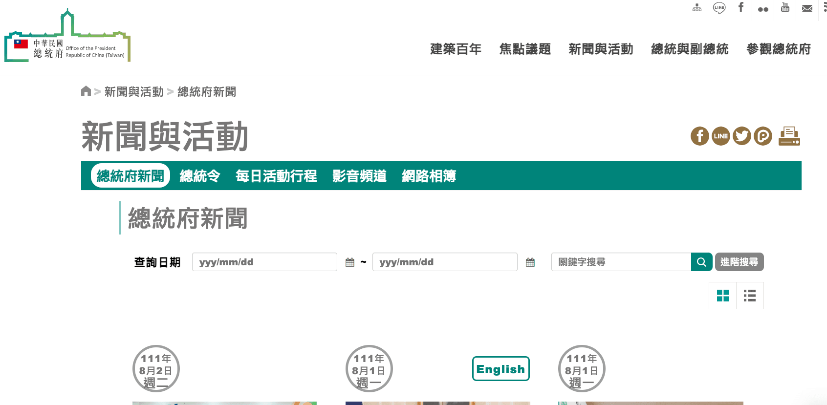 美國眾議院議長裴洛西預計2日晚間抵台,總統府網站卻於下午5時15分起遭受境外網路攻擊,攻擊流量為平日200倍,導致官網一度無法顯示,但此狀況在20分鐘內排除,目前網站已恢復正常運作。總統府發言人張惇涵表示,面對境外勢力持續的複合式資訊作戰,政府各機關會持續加強監控,維護國家資通訊安全,以及各關鍵基礎設施穩定運作。