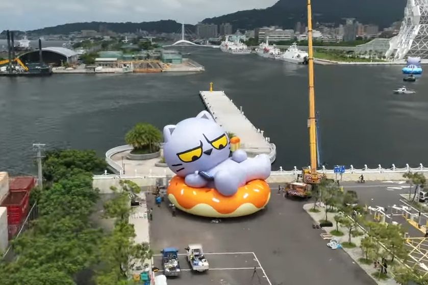 高雄市政府推出「聊療漂漂河」活動,六大LINE人氣貼圖角色變身為大型氣球裝置藝術,在愛河上漂浮,也吸引許多遊客欣賞。不過其中「貓爪抓」的氣球裝置藝術4日因瞬間風勢過大,導致損壞並漏氣,將暫停展示並進行維修作業。