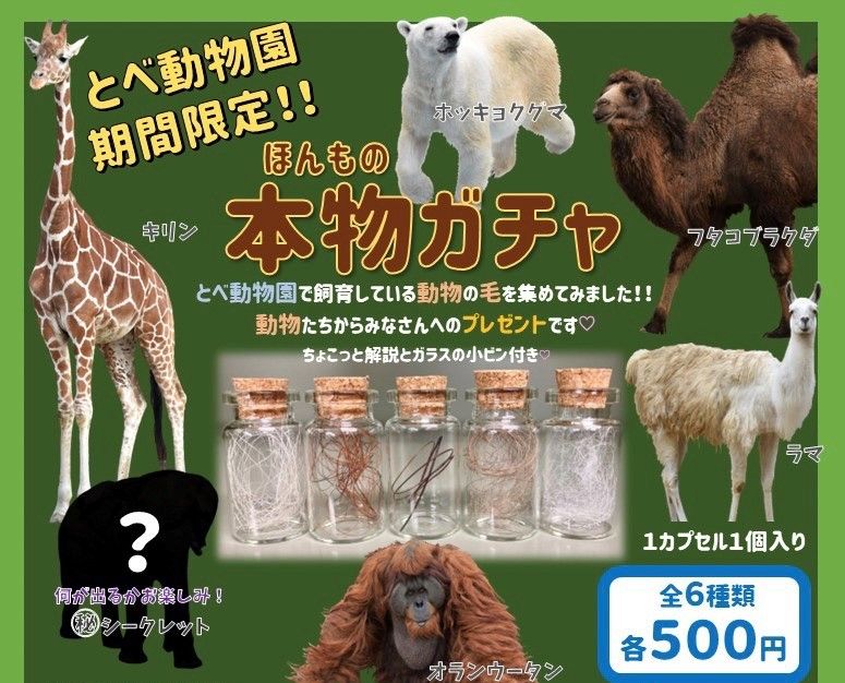 綜合日本媒體報導,園方表示,會推出「動物毛髮」扭蛋,其實一開始的發想是「如何有效利用至今被丟棄的動物毛髮」,而且一般民眾很少能接觸到這些動物的毛髮,若推出這類型扭蛋,想必能讓民眾體驗到不同樂趣,這次先推出北極熊、雙峰駱駝、羊駝、猩猩、長頸鹿,以及1款隱藏版動物,共6款式,每顆扭蛋為日幣500元(約台幣112元)。