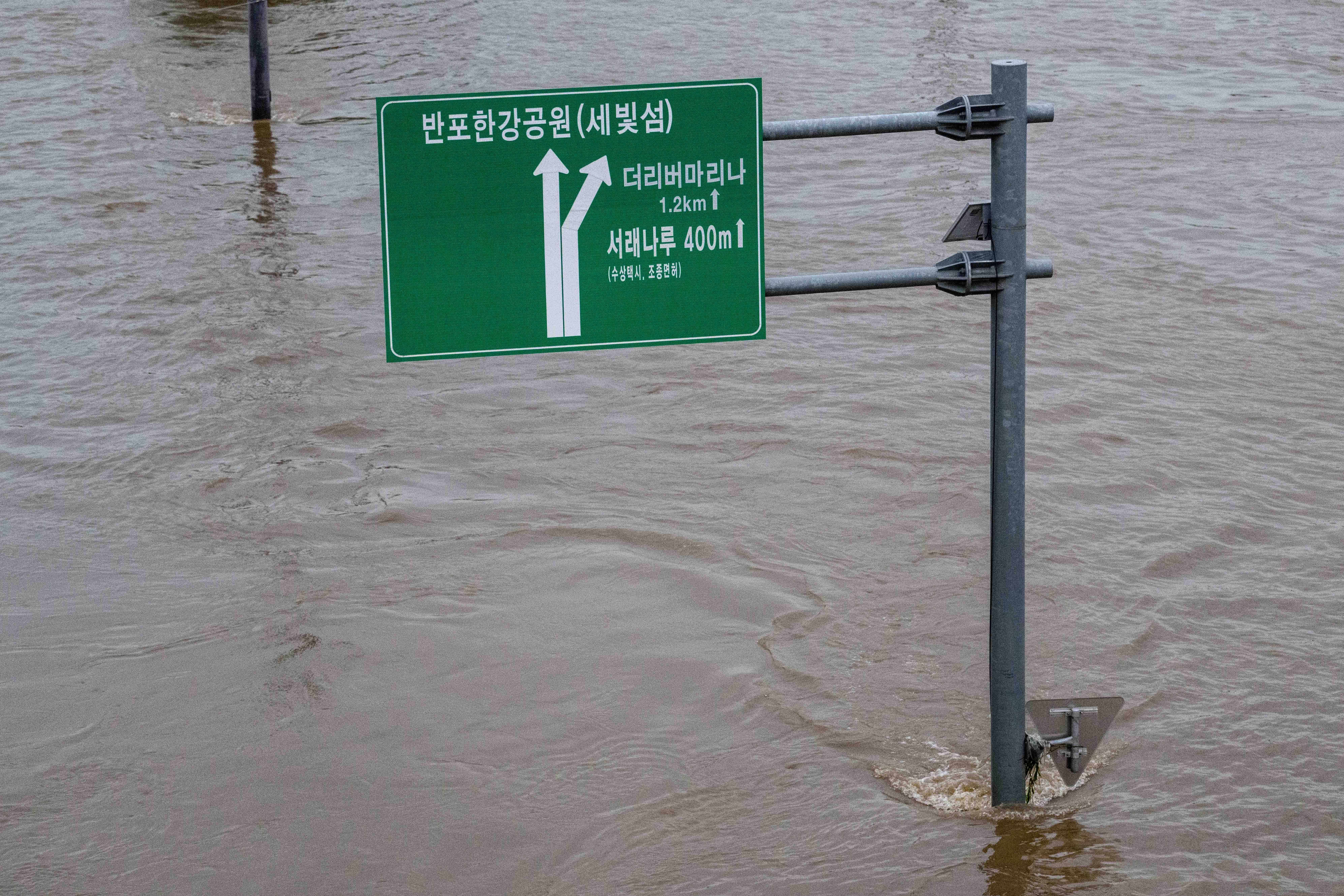 南韓首爾8日晚間起連日下起暴雨,因雨勢過大造成各地傳出淹水、民眾失蹤、死亡等災情,降雨量達525mm,連重量40公斤到160公斤不等的人孔蓋,也因無法承受水壓而彈飛,有一對40、50歲的姊弟走在路上,因水淹至膝蓋看不清人孔蓋被打開,姐弟掉進洞裡,經消防人員搜救,10日在事發地點1.5公里外的下水道內尋獲弟弟遺體,11日則在溪流中尋獲姐姐遺體,目前災情已造成13人死亡。