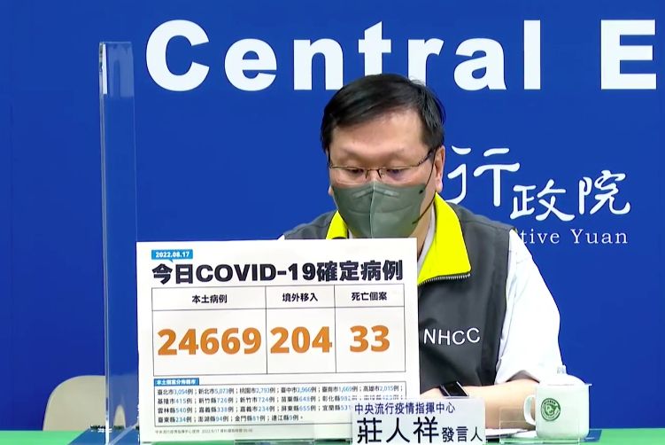 指揮中心指出,今日新增33例本土病例死亡個案,為19例男性、14例女性,年齡介於50多歲至90多歲以上,皆屬重度感染、32例具慢性病史、23例未接種3劑COVID-19疫苗。確診日介於今(2022)年5月11日至8月13日,死亡日期介於5月11日至8月14日。