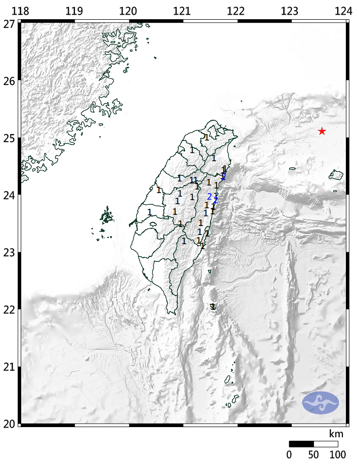 根據中央氣象局公告,震央位在台灣東北部海域,地震深度161.5公里,芮氏規模5.7,花蓮縣地區最大震度2級,宜蘭縣、新竹縣、台中市、南投縣、台東縣、彰化縣、雲林縣、新北市等地區最大震度1級。