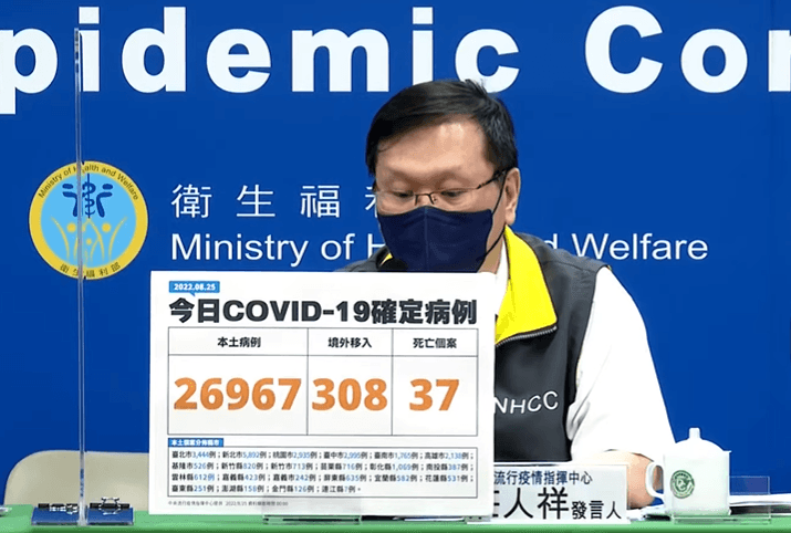 指揮中心指出,今日新增37例本土病例死亡個案,為25例男性、12例女性,年齡介於30多歲至90多歲以上,皆屬重度感染、34例具慢性病史、26例未接種3劑COVID-19疫苗。確診日介於今(2022)年5月26日至8月22日,死亡日期介於5月19日至8月22日。