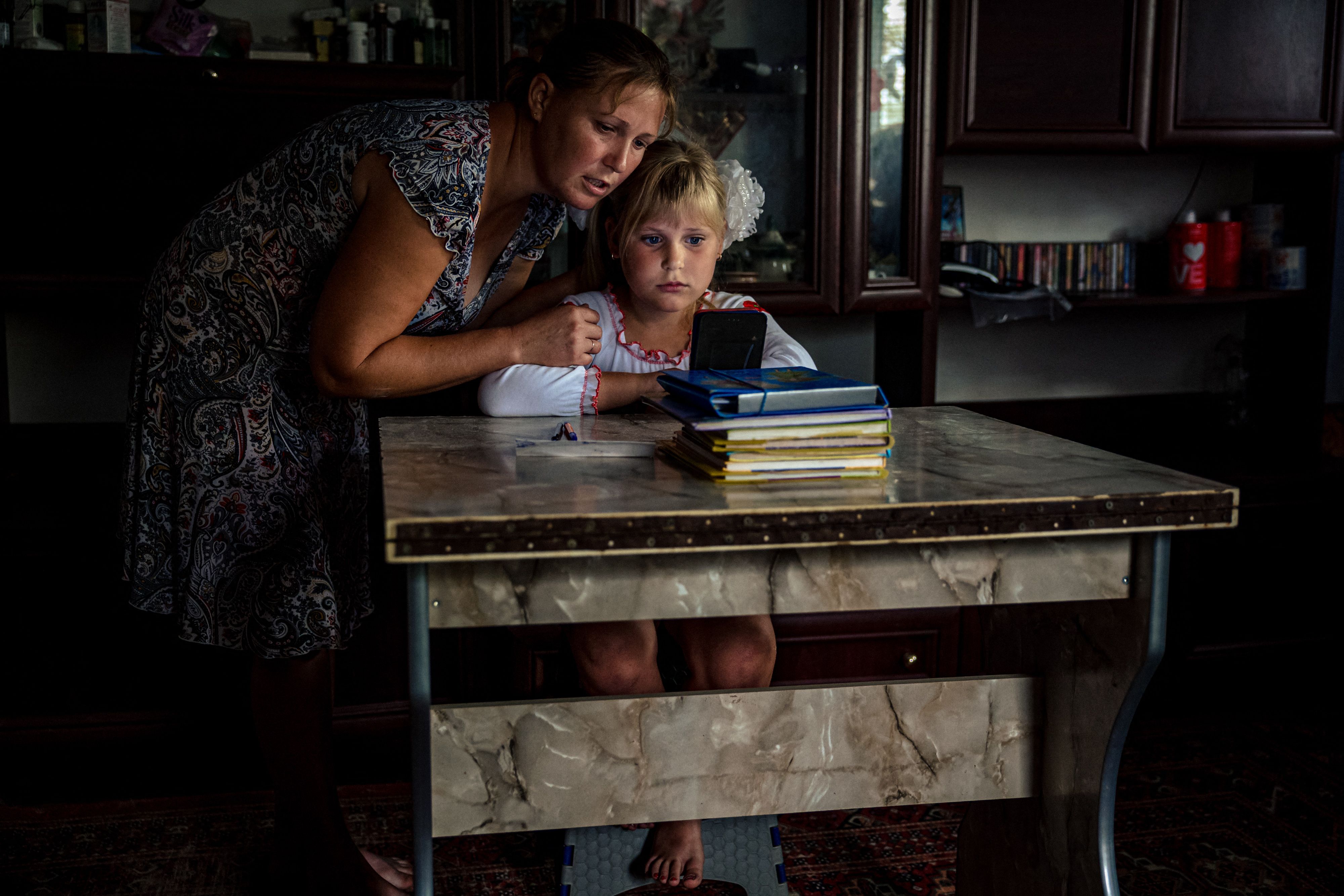 安東尼娜一家住在烏克蘭南部的尼古拉耶夫州(Mykolaiv)一座波克羅夫西克(Pokrovske)小村莊裡,這裡只有24位居民,加上地處戰爭前線附近,目前此地實施遠距教學。對於安東尼娜的爸媽來說,克服遠距教學的技術也是一大挑戰,他們僅能在手機安裝Zoom,還要確保網路暢通,且自從夏季供電中斷後,全家用電僅能依靠非政府組織提供的太陽能板。