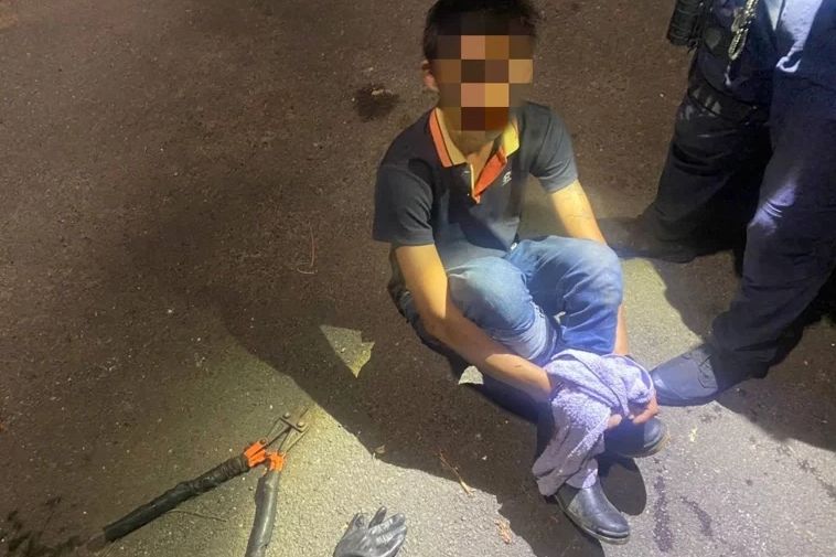 該名李姓男子見事跡敗露,只能尷尬笑說「還沒剪」,間接坦承他正要下手偷電纜線,他透露自己沒想到這個時間竟然有警車經過,一時緊張才會從3公尺高的電線杆上摔下來,他的油壓剪、絕緣手套也散落在身邊。
