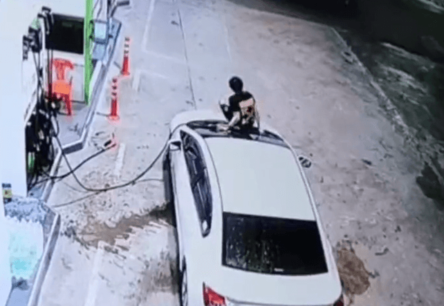 綜合泰媒報導,1名台籍男子於3日持刀前往大城府烏泰區1間加油站,看到1輛車正在加油,竟拔掉油槍作勢攻擊,甚至闖入後座威脅車主下車,他隨後試圖將車開走卻發現沒鑰匙,只好又下車爬到引擎蓋上叫囂。