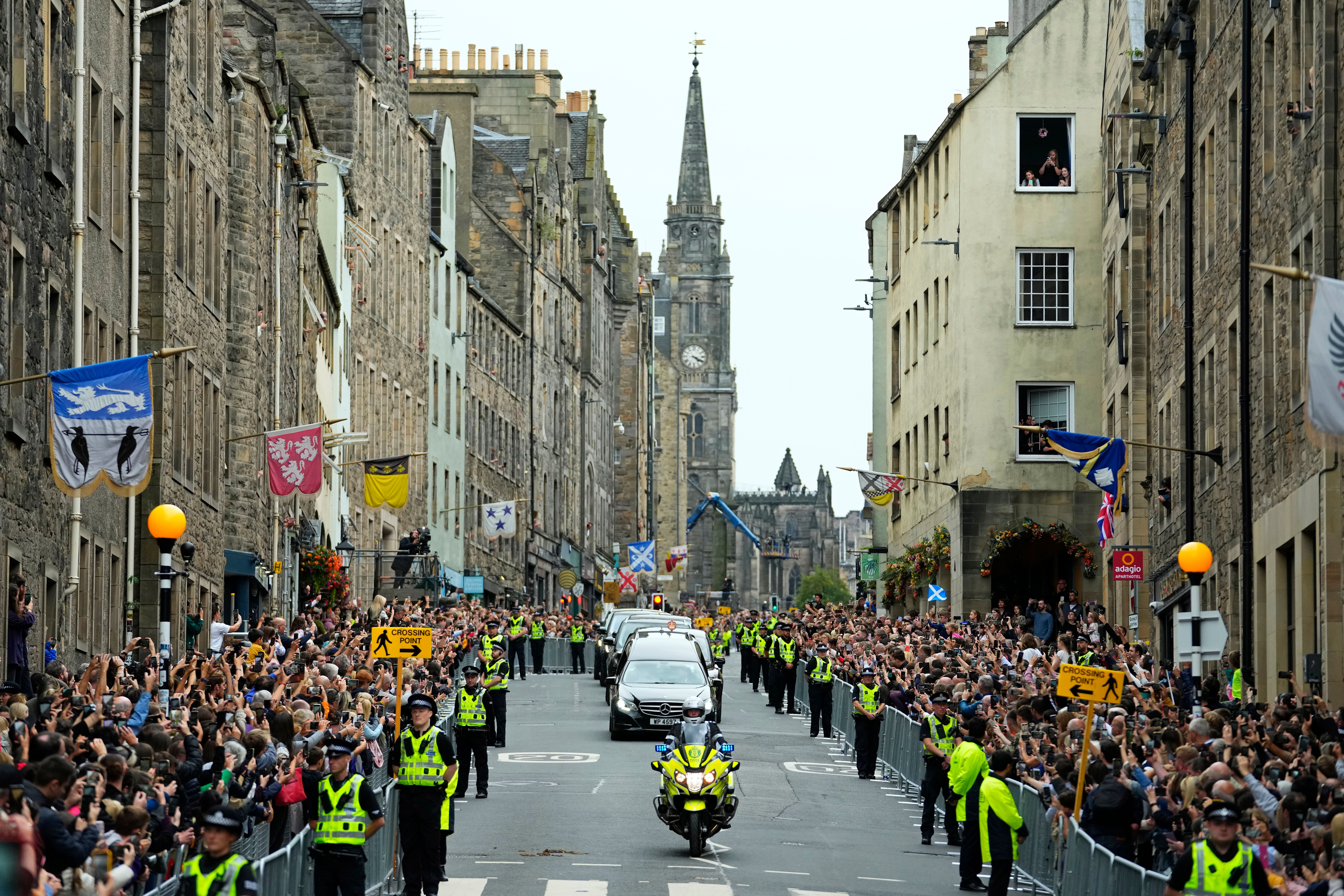 英國女王伊莉莎白二世逝世,其靈柩車隊於當地時間11日抵達蘇格蘭愛丁堡的荷里路德宮,12日移往聖吉爾斯大教堂供蘇格蘭民眾瞻仰,多達1萬名警力在靈柩車隊周邊佈署戒備,有警察在路上站崗、檢查下水道,甚至有狙擊手在教堂屋頂制高點上駐守,確保維安滴水不漏。