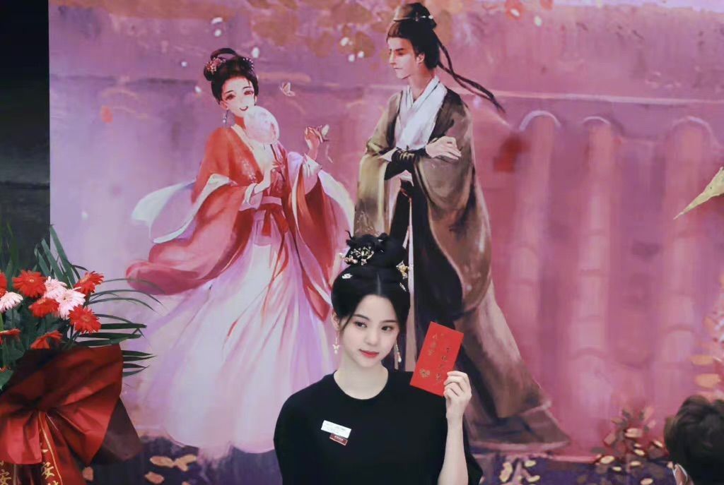 歐陽娜娜13日出席新戲《永安夢》的開機儀式,她身穿黑衣、頭頂古裝髮型亮相,拿著紅包站在宣傳背板前拍照,髮型還與身後背板女主角的髮型一致,不料這看似自然的宣傳背板,卻遭人爆料是盜用他人圖片而成。