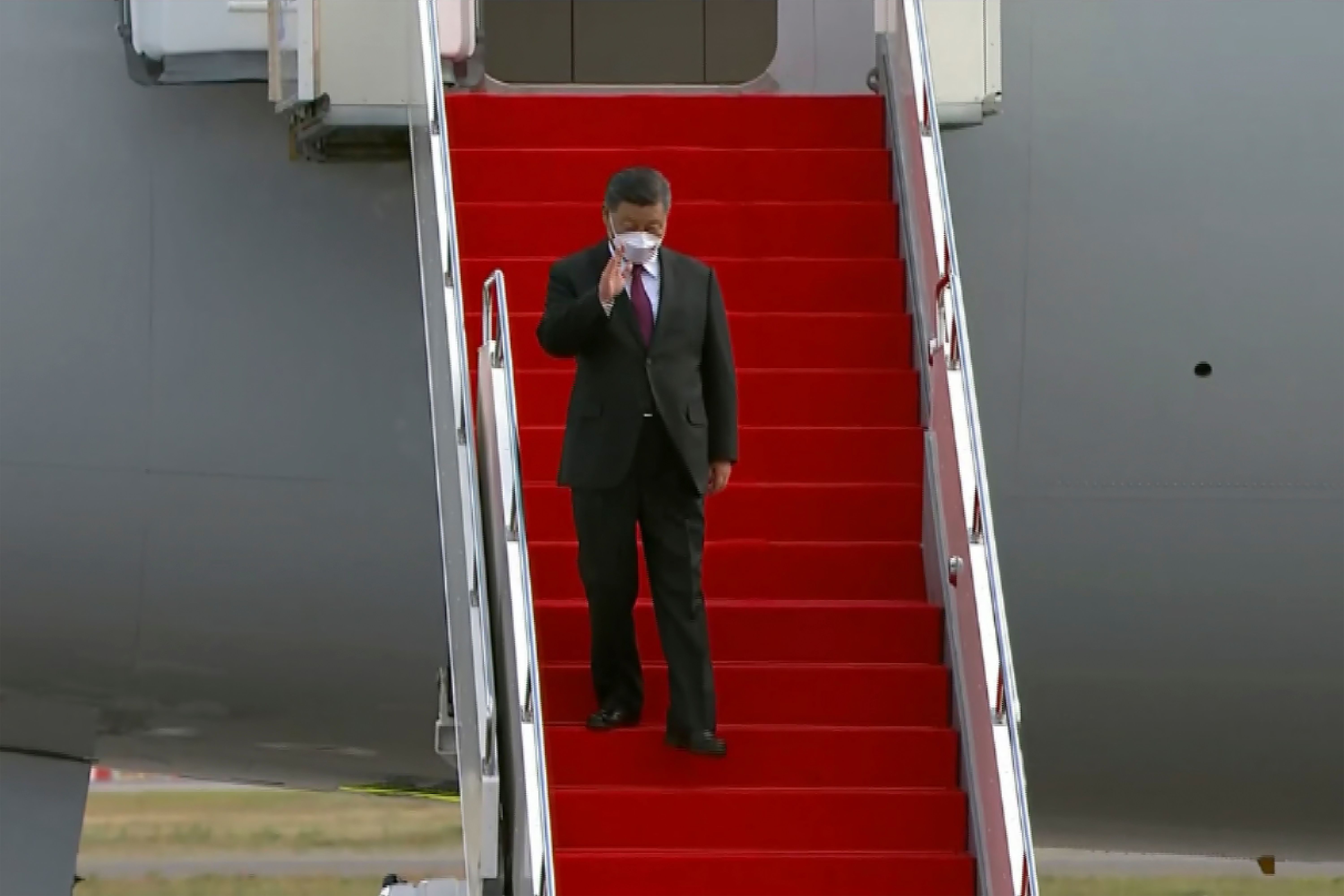 中國領導人習近平,自2020年新冠疫情爆發後已近3年未踏出國門,14日他搭機抵達哈薩克,哈薩克總統托卡葉夫親自接機,不料習近平才剛下機走沒幾步,就因未留意腳下,一度沒踩好階梯,險些踩空,幸好他反應夠快,趕緊伸出右手抓住一旁的欄杆,才沒有跌倒。接著,習近平行走時似乎就怕再度腳滑,雖然不忘揮手打招呼致意,但頭也沒抬專心低著頭走路。