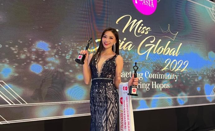 台灣佳麗高曼容13日代表台灣前往馬來西亞,參加「2022 Miss Asia Global亞洲環球小姐」,同時也受邀出席「世界創新與科技大會」的開幕儀式,不料卻因為中國打壓,在上台前一刻遭阻攔,她因而在台下痛哭引發網友不捨。而19日高曼容在臉書上報喜,自己獲得4座大獎,並將功勞歸功於每一個支持她的人。