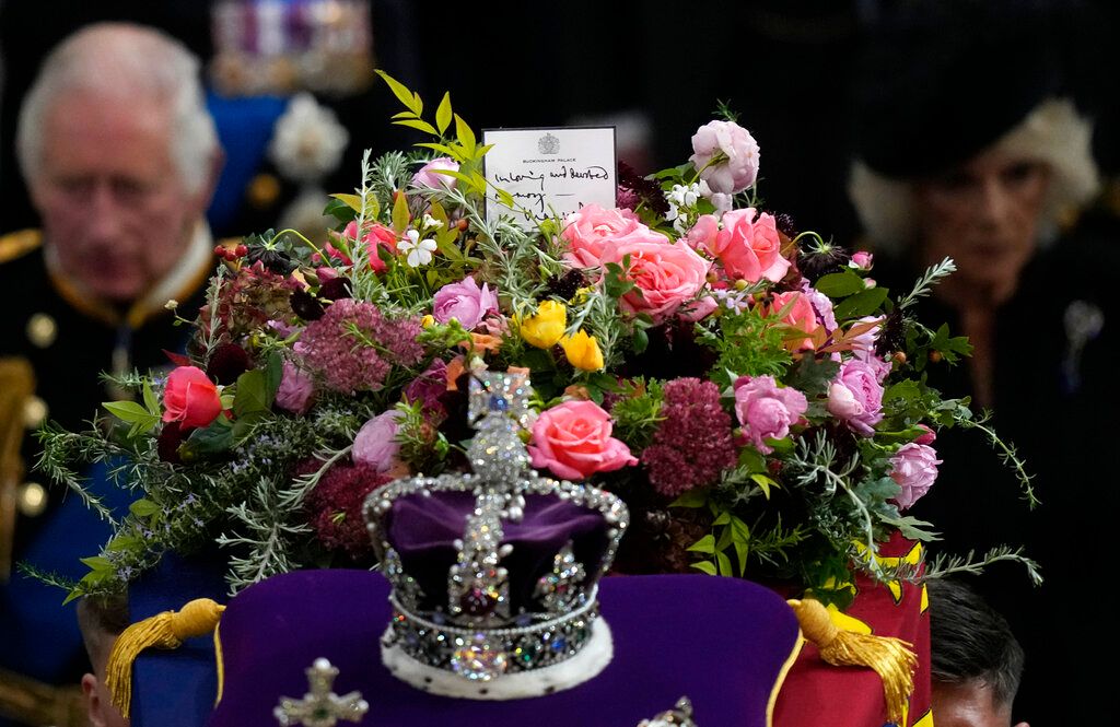 外媒綜合報導,19日英國女王伊莉莎白二世國葬,其子也就是新任國王查爾斯三世親自為母親挑選擺放在靈柩上的花束,根據白金漢宮說法,花束內包含迷迭香葉子、英國橡樹、香桃木與粉紅色、酒紅色、亮黃色的花朵,而這些全都是從白金漢宮、克拉倫斯宮等王室居所中的花園摘下。