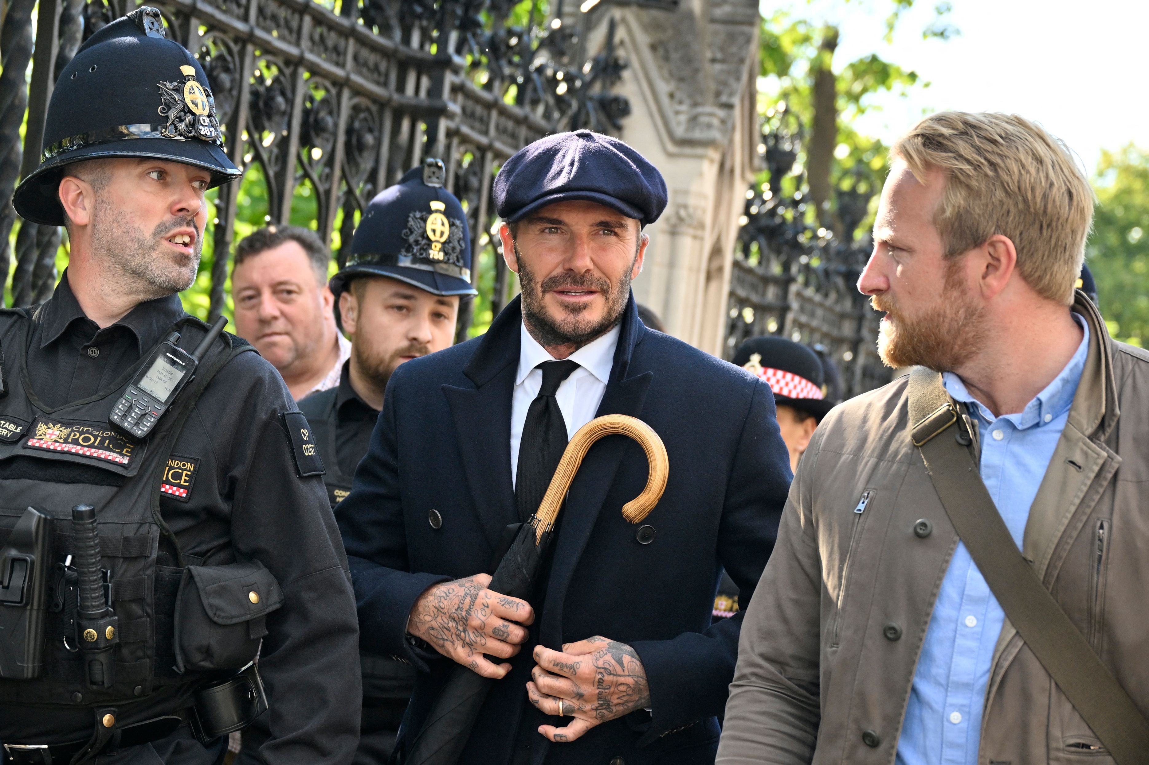而女王逝世後,靈柩曾停放西敏廳供民眾瞻仰,貝克漢為了致意,與一般民眾一起排隊,終於在排了13多個小時後,順利進入西敏廳,致意期間更不禁落淚。據悉,當地議員可帶4名人士免排隊入場,雖然貝克漢曾受某議員邀約,但他婉拒對方好意,因為他已故的祖父母是堅定的擁護王室派,他認為要是使用特權恐怕會讓祖父失望,才堅持親自排隊。