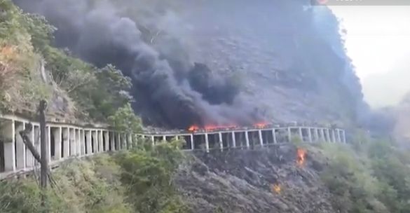 花蓮銅門龍澗7公里處的明隧道,今天(9/21)下午1點多,突然傳出火警。消防人員獲報趕往灌救,初步了解起火點是在隧道上方,用來減緩落石撞擊力道的廢輪胎,火勢非常猛烈。