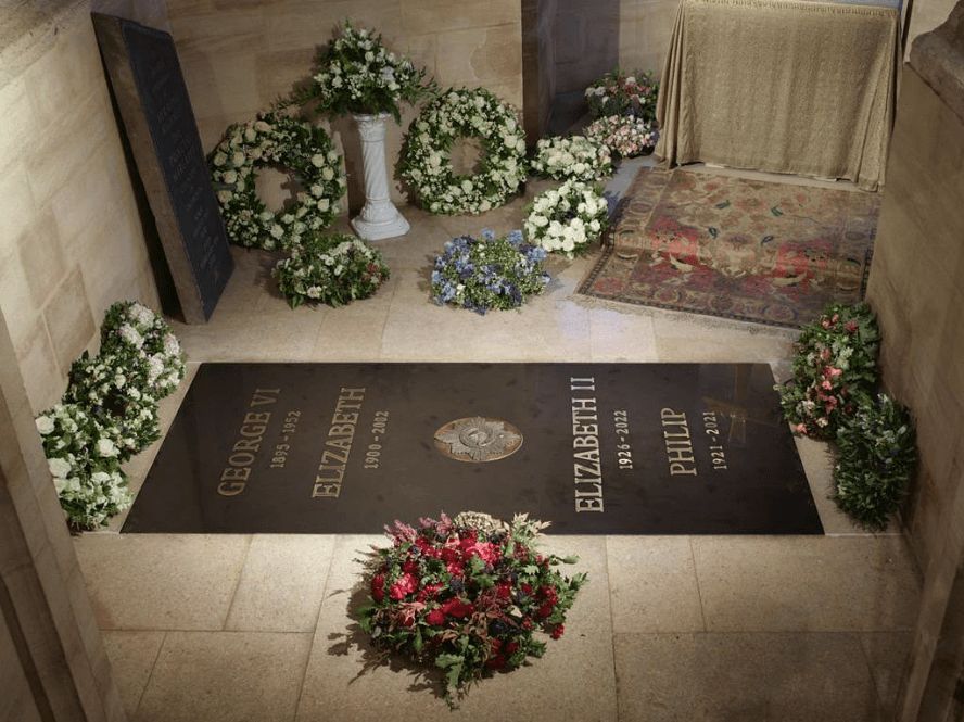 白金漢宮於當地時間週六(24日)發布英國女王伊麗莎白二世最後安息地的影像,只見花圈、花束圍繞一塊黑色大理石製成的墓碑,上頭同時刻有女王,以及其父母和丈夫菲利浦親王的名字,象徵一家人已團聚,另外,令伊麗莎白二世思念不已的妹妹也在同一空間。