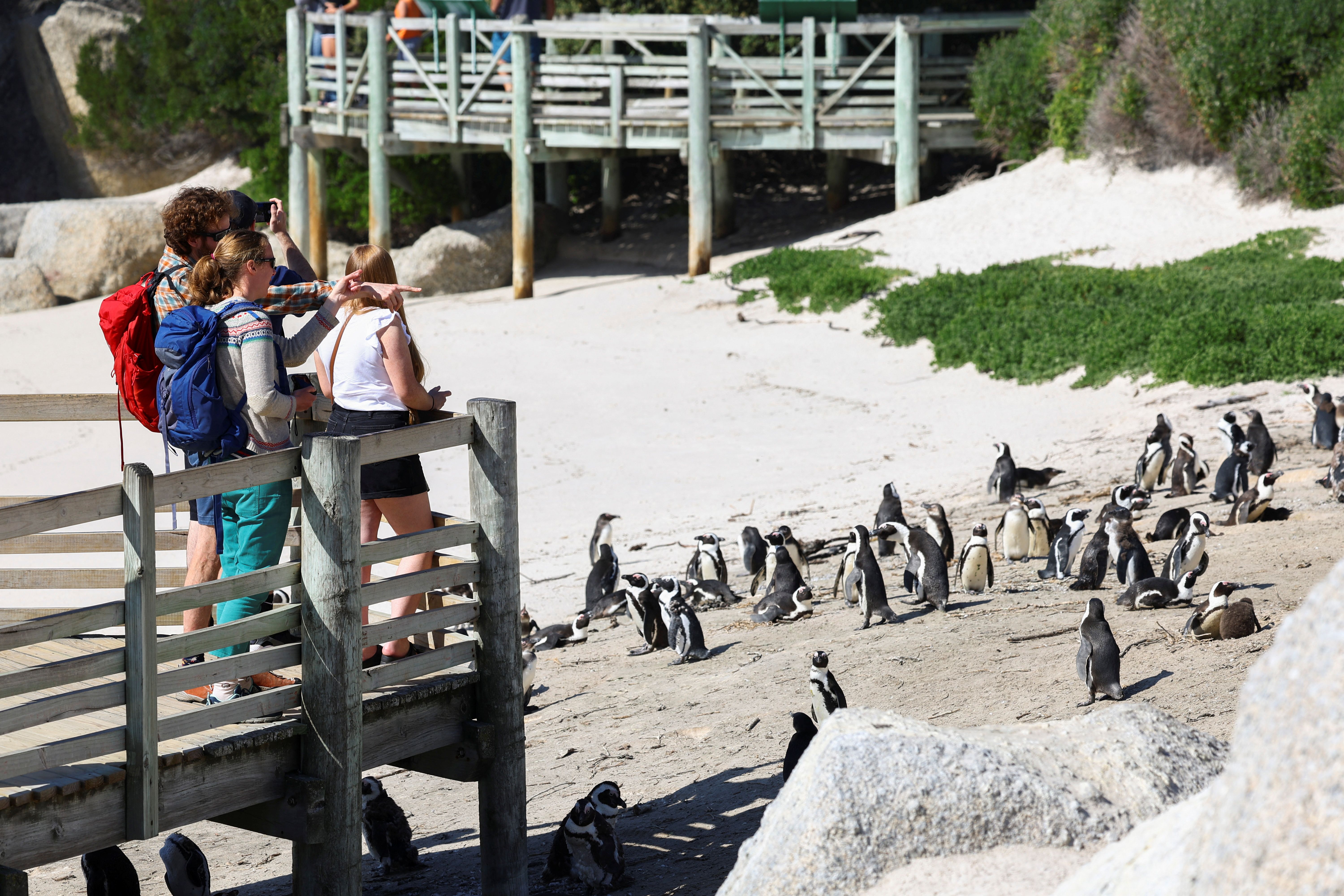綜合外媒報導,博爾德斯海灘(Boulders Beach)保護區是非洲企鵝(African penguin)的繁殖地,牠們因雙腳為黑色的,又稱黑腳企鵝,這海灘大約有3,000多隻企鵝,是觀光客必造訪的景點之一,不過當地近年受禽流感影響,造成大量企鵝與鳥類死亡。