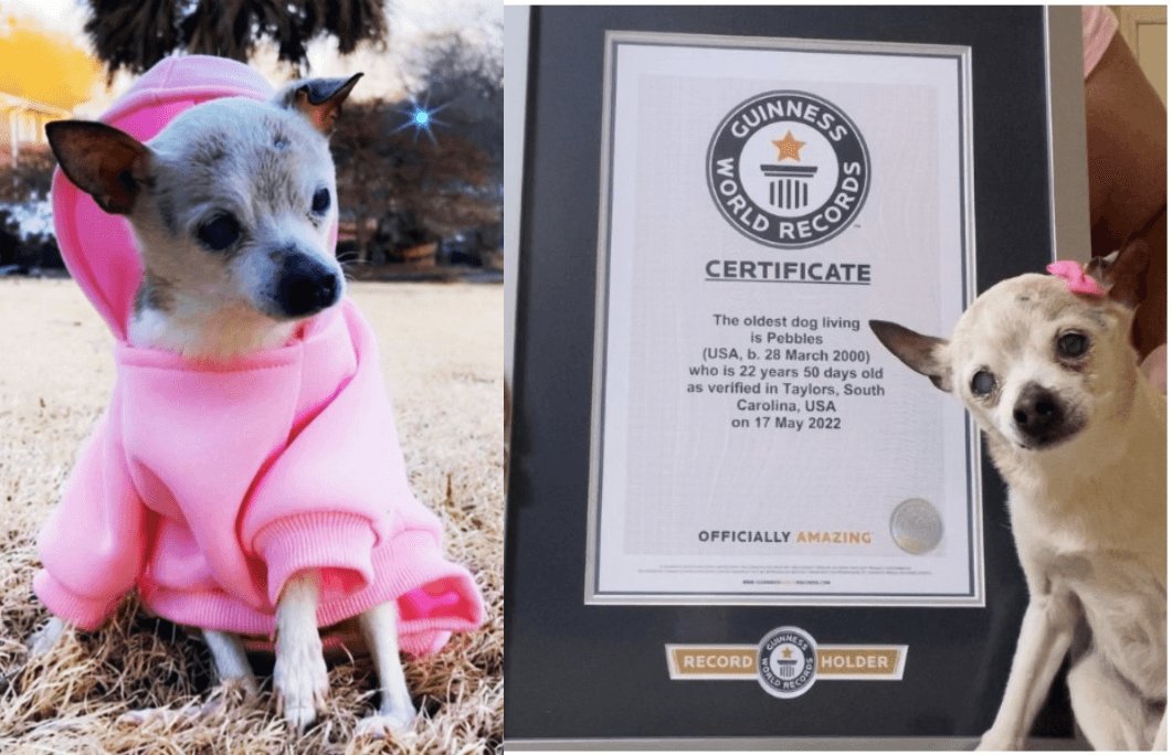 美國一隻狗狗「鵝卵石」(Pebbles)於今年5月,以狗齡22歲又59天獲得金氏世界紀錄,不過金氏世界紀錄官網宣佈「鵝卵石」已於3日在家中過世,而牠的主人也透過IG證實此消息,並表示:「牠在迎接23歲生日的前5個月離開了,很榮幸牠能作為我們的寵物和家庭成員。」