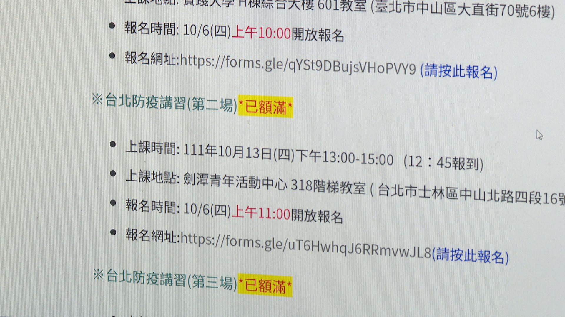 打開網站,想趕在國境解封前,完成領隊導遊出入境防疫課程,沒想到,北中南5場講習,場場爆滿。台灣旅遊發展促進協會理事長張桂銓:「前面在設的場次都是各公協會,包含領隊導遊協會,還有我們各個地方旅遊公會,他針對會員去做的一些場次,所以前面會有這個供不應求的情況。」