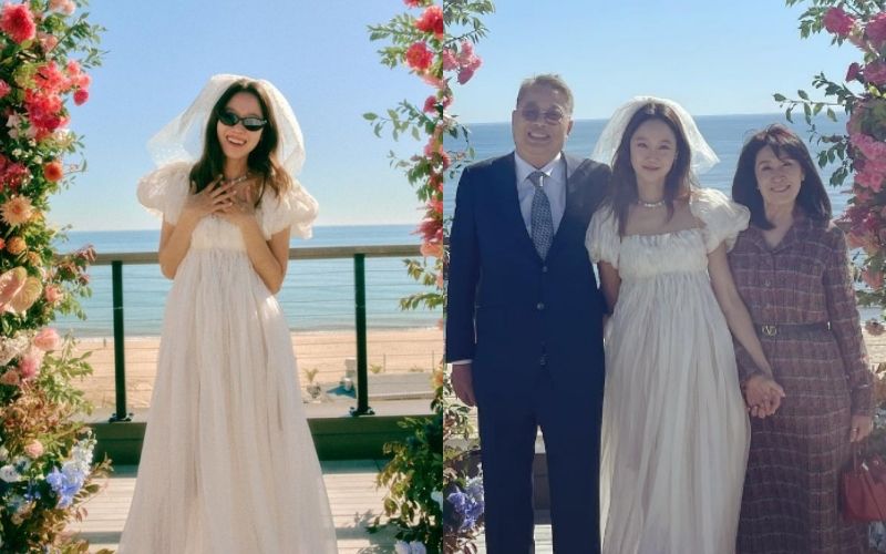 孔曉振與Kevin Oh交往2年,彼此視對方為「靈魂伴侶」,孔曉振在今年3月出席好友孫藝真與玄彬的婚禮,幸運接到捧花,跟隨好友腳步晉升人妻,近來陸續在IG釋出婚禮照片,她分享戴墨鏡、以碧海藍天為背景的婚紗全身照,半透明白紗隱約露出美腿;另一張則是她緊牽父母的手合照,並感性告白:「爸爸、媽媽,謝謝你們把我扶養成帥氣的人,我會成為更好的人。」