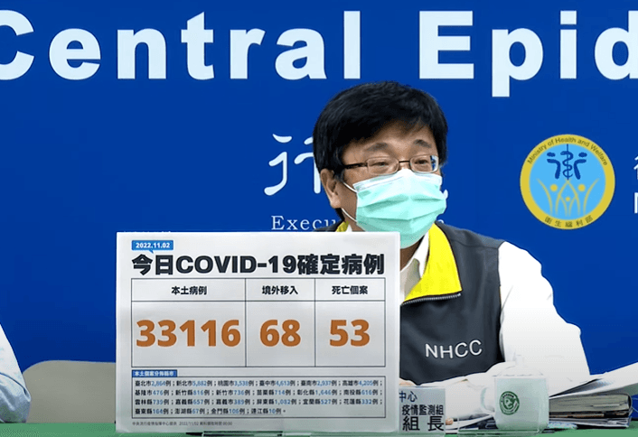 指揮中心指出,今日新增53例本土病例死亡個案,為32例男性、21例女性,年齡介於30多歲至90多歲以上,皆屬重度感染、50例具慢性病史、35例未接種3劑以上COVID-19疫苗。確診日介於今(2022)年8月28日至10月29日,死亡日期介於9月25日至10月30日。