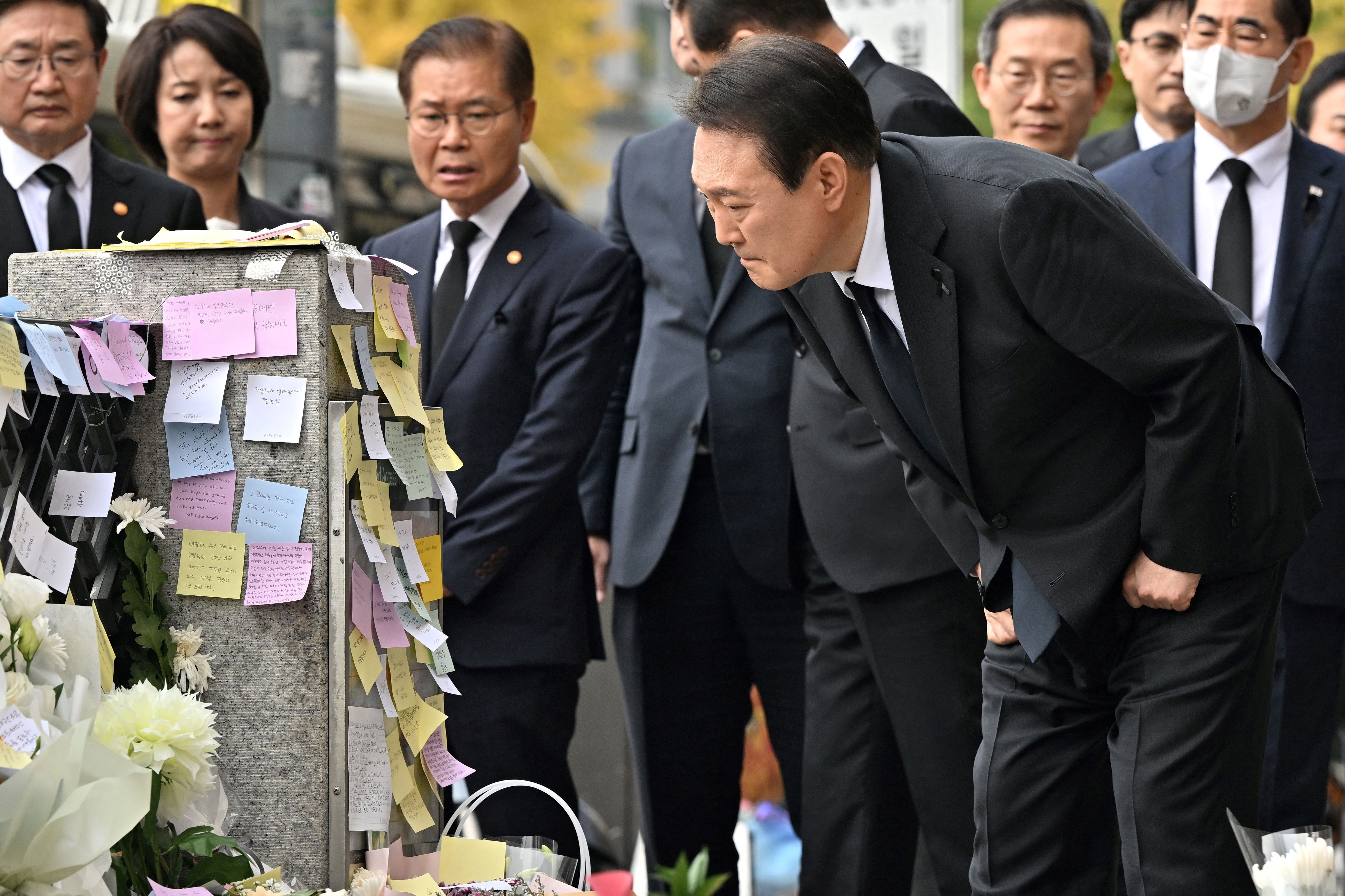 南韓5日將結束梨泰院慘劇的全國哀悼期,晚間南韓各地將會舉辦一連串的燭光守夜,送事件罹難者最後一程。而面對民眾與日俱增的憤怒輿論,南韓總統尹錫悅4日出席曹溪寺追思法會時,除了首度在公開場合上以總統的身分針對此事致歉外,同時也強調政府會負起責任,照顧傷者與罹難者家屬至最後一刻。