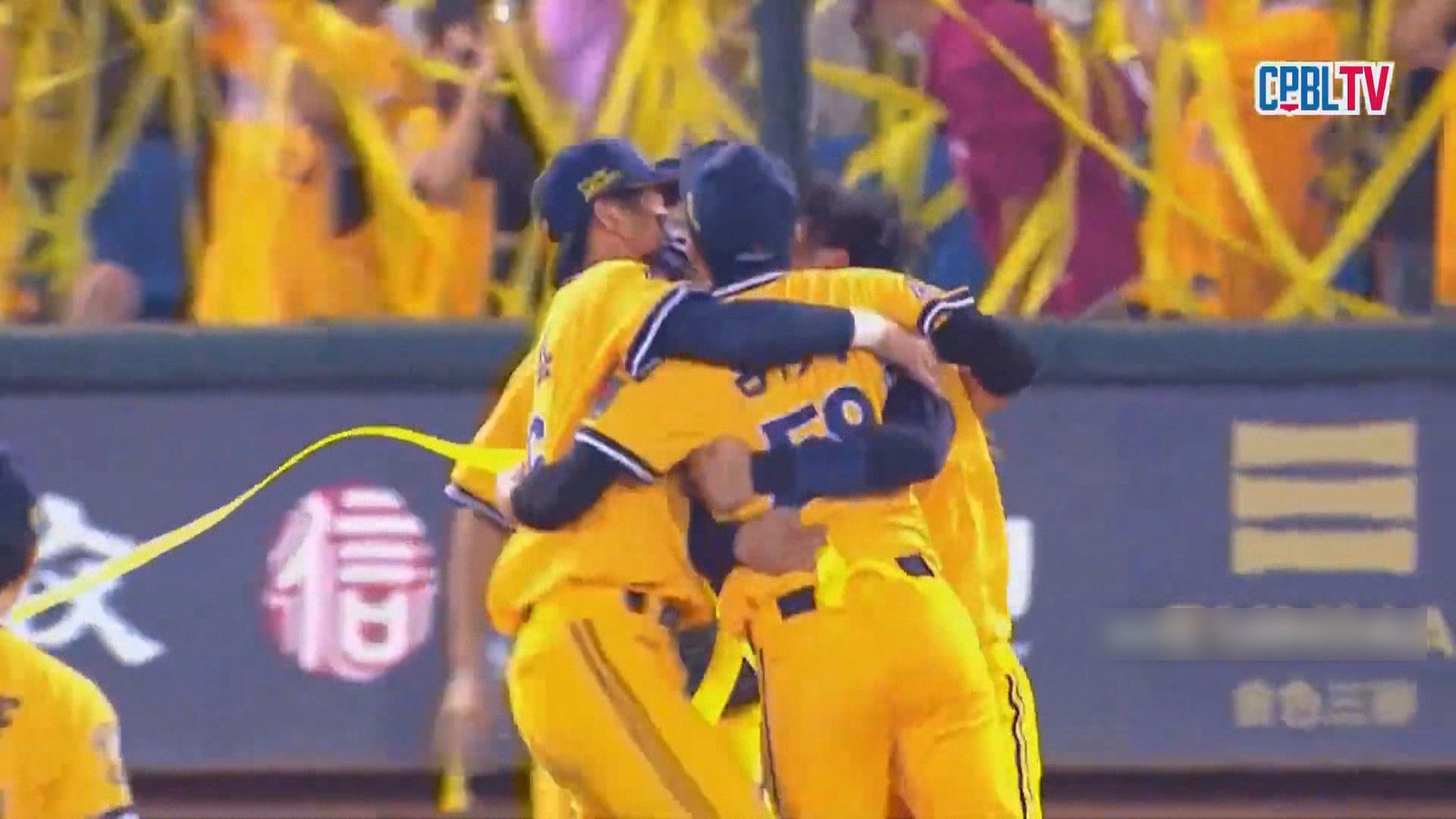 球賽主播:「呂彥青三振掉了朱育賢,恭喜中信兄弟!是中華職棒33年的總冠軍,完成了2連霸。」2萬條黃彩帶同時拋進球場,中信兄弟以直落4驚人成績完成二連霸,拿下隊史上第九座中職總冠軍獎盃。全場球迷熱血沸騰,球員更是激動狂歡,中信球團董事長辜仲諒賽後緊緊抱著總教練林威助,畢竟二連霸實在得來不易。