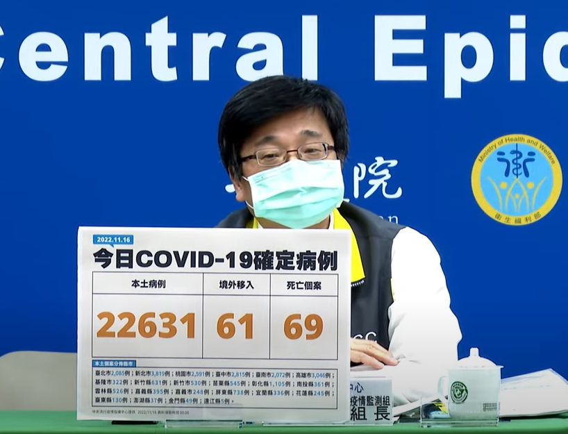 指揮中心指出,今日新增69例本土病例死亡個案,為43例男性,26例女性,年齡介於50多歲至90多歲以上,皆屬重度感染、66例具慢性病史、41例未接種3劑以上COVID-19疫苗。確診日介於今(2022)年9月21日至11月13日,死亡日期介於10月25日至11月13日。