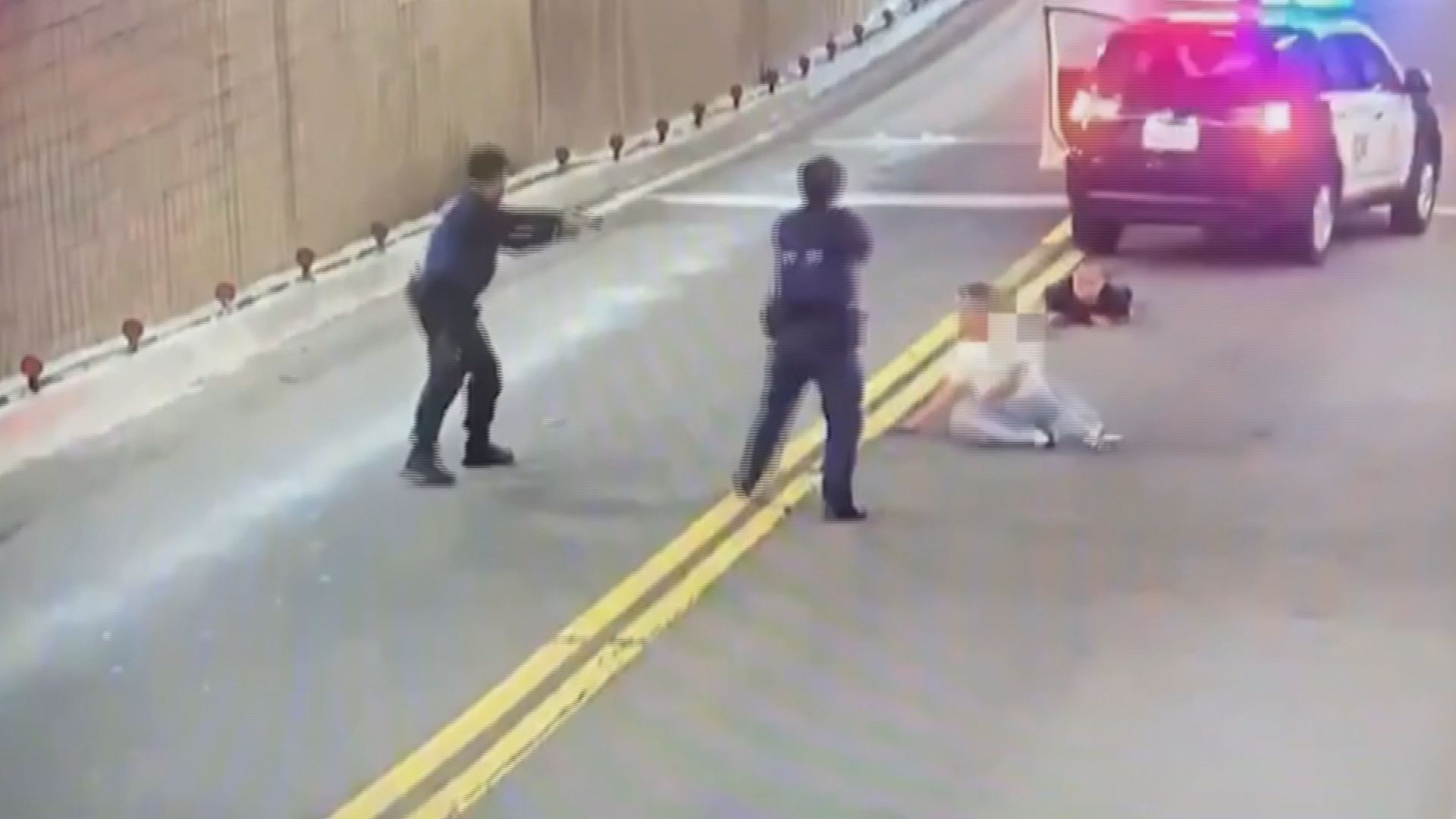 周邊臨檢警方聽聞猛烈撞擊聲抵達現場,李男下車後不聽勸阻,還試圖攻擊警方,最後遭警方開2槍壓制,左大腿中彈送醫無生命危險,李男同車陳姓男子看到現場有記者拍攝,還對記者動手,隨後被依傷害現行犯逮捕送辦,同車曾姓少年也被警方帶回,其餘逃逸4人事後均遭傳喚到案。