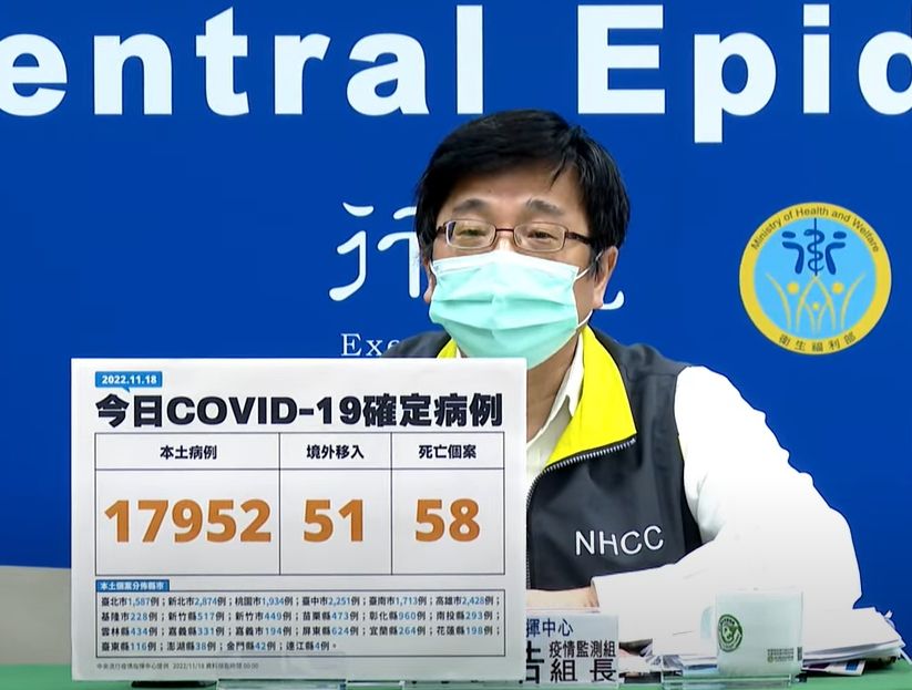 疫情監測組組長周志浩表示,昨天新增1萬7,952例,比起上週五2萬多例,減少11%左右,顯示疫情仍往下趨勢,境外新增51例,與前幾天差不多,死亡新增58例,比前兩天降低一些。