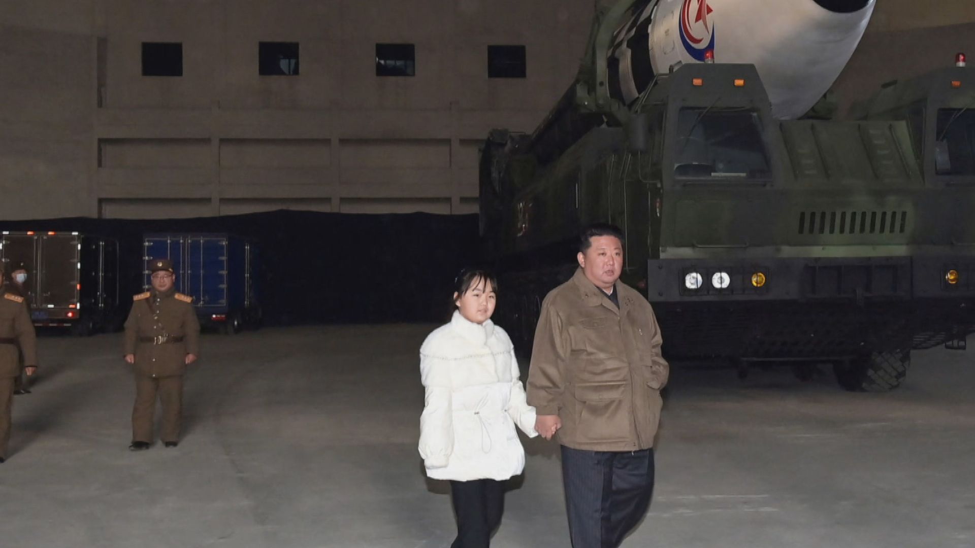 北韓領導金正恩緊緊牽著身穿白色冬裝的小女孩,一同視察身旁最新的火星17型洲際彈道飛彈,北韓官媒19日公布一系列照片,首度曝光金正恩的寶貝女兒。《韓聯社》:「《朝中社》報導了金正恩委員長與摯愛的子女還有夫人,一同現身飛彈發射場。」從這張照片看更清楚,小女孩確實與金正恩還有第一夫人李雪主有幾分神似,這回全家大小總動員齊聚發射場,就是要近距離視察洲際彈道飛彈試射。